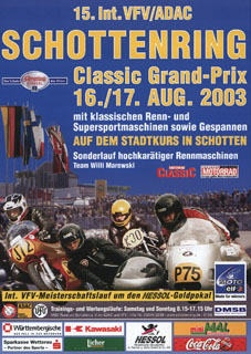 Am 16. und 17. August 2003 findet der inzwischen 15. Internationale VfV / ADAC Schottenring Classic Grand-Prix mit klassischen Renn- und Supersportmaschinen sowie Gespannen auf dem Stadtkurs der idyllischen Vogelsberg-Gemeinde Schotten statt.